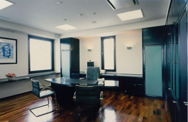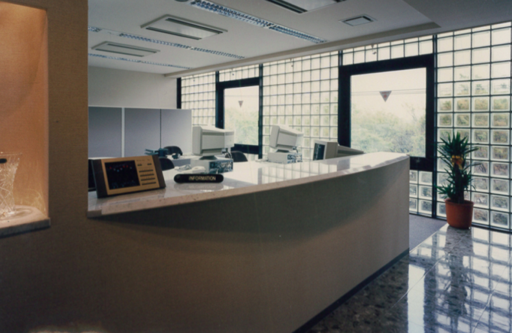 ファサードをガラスブロックによりデザインし明るい執務空間となっています。